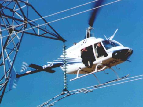 The qualified inspector is seated on the skid of a helicopter and held at close proximity to the line. The helicopter follows a regular and well-defined flight path at each tower to facilitate a complete study of the structure from the earthwire attachment to the footing and then slowly proceeds down the span. The inspector's defect detection ability is greatly enhanced by the use of gyroscopically stabilised binoculars.