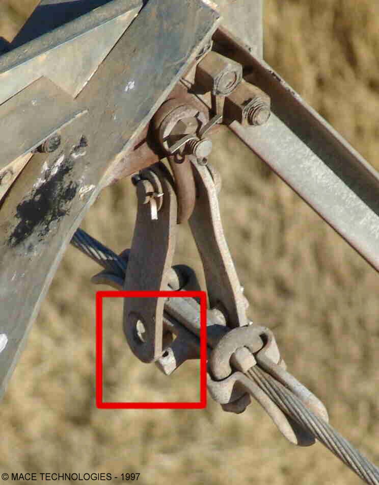 The Mace Technologies "Hawkeye" aerial close-visual inspection is a condition monitoring tool designed to establish the precise state of overhead transmission and distribution lines. The technique allows thorough examination of each component - even at midspan. Small but potentially catastrophic faults, such as displaced split pins, loose nuts and conductor strand damage, are readily detected.