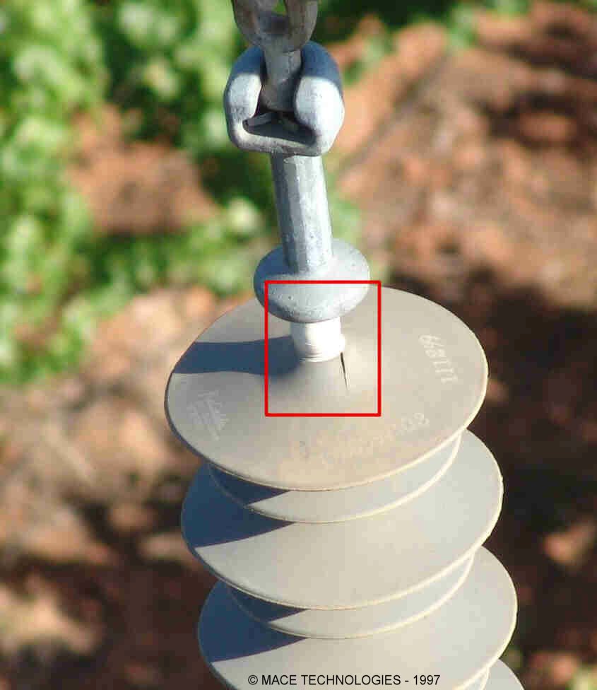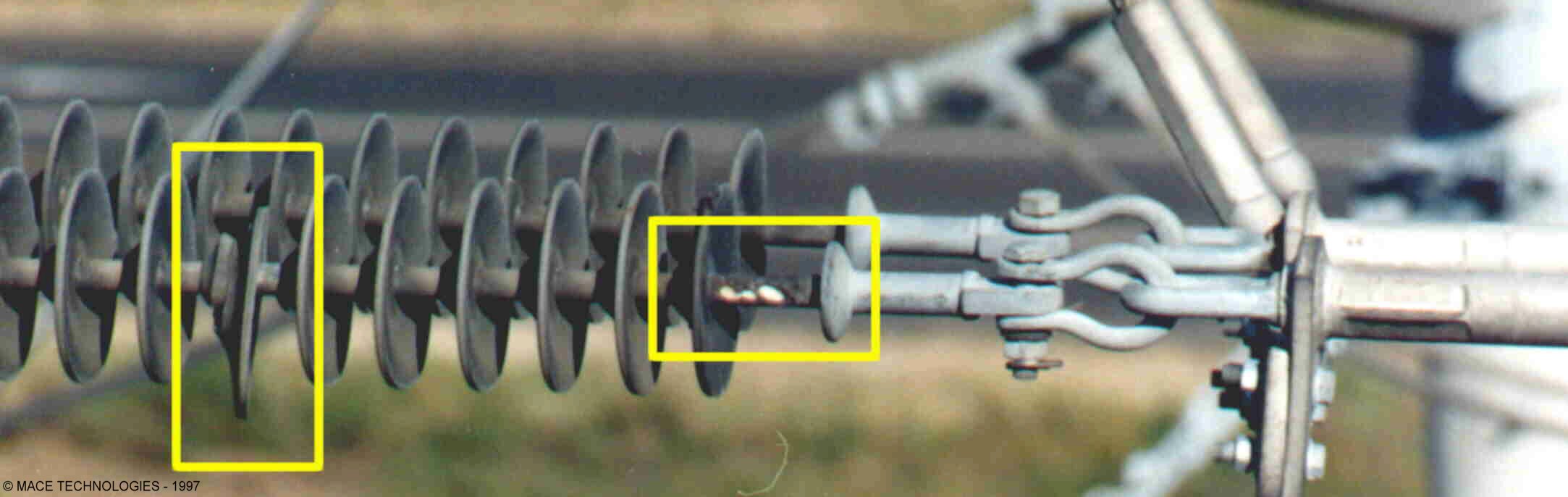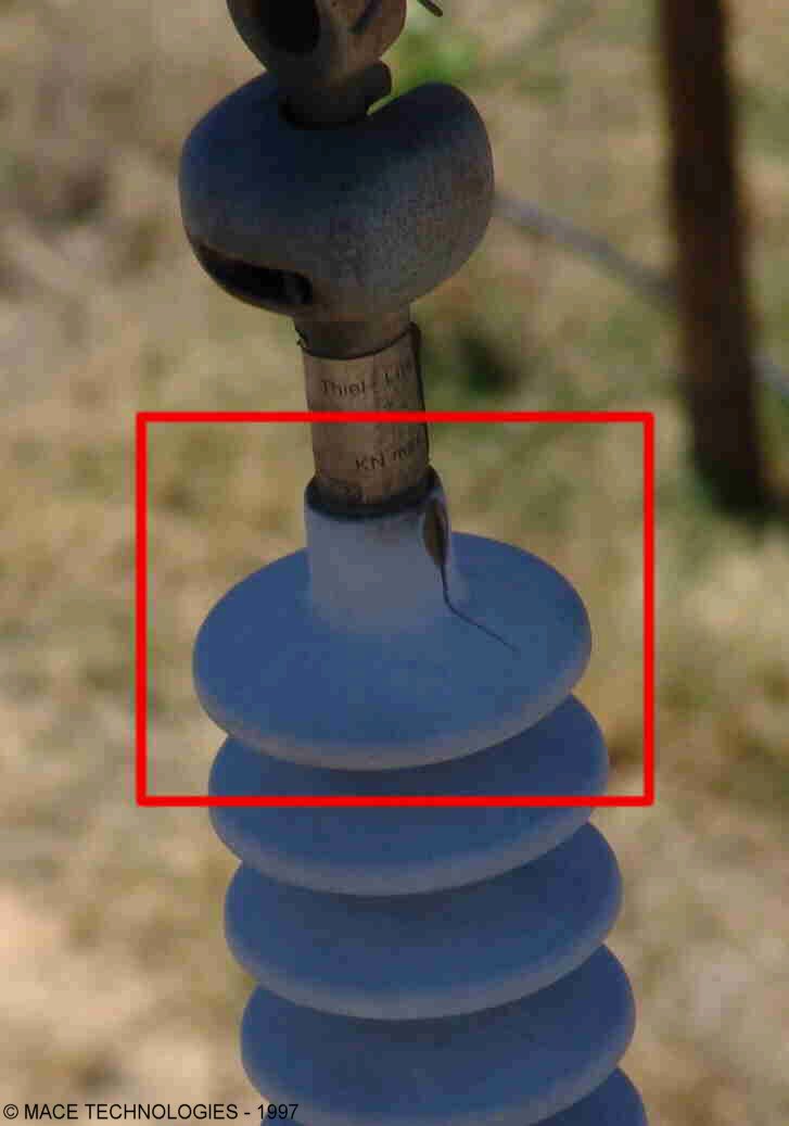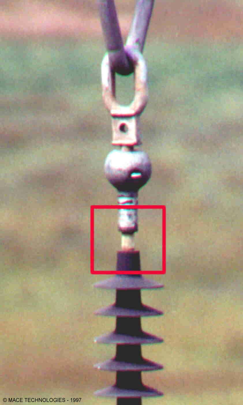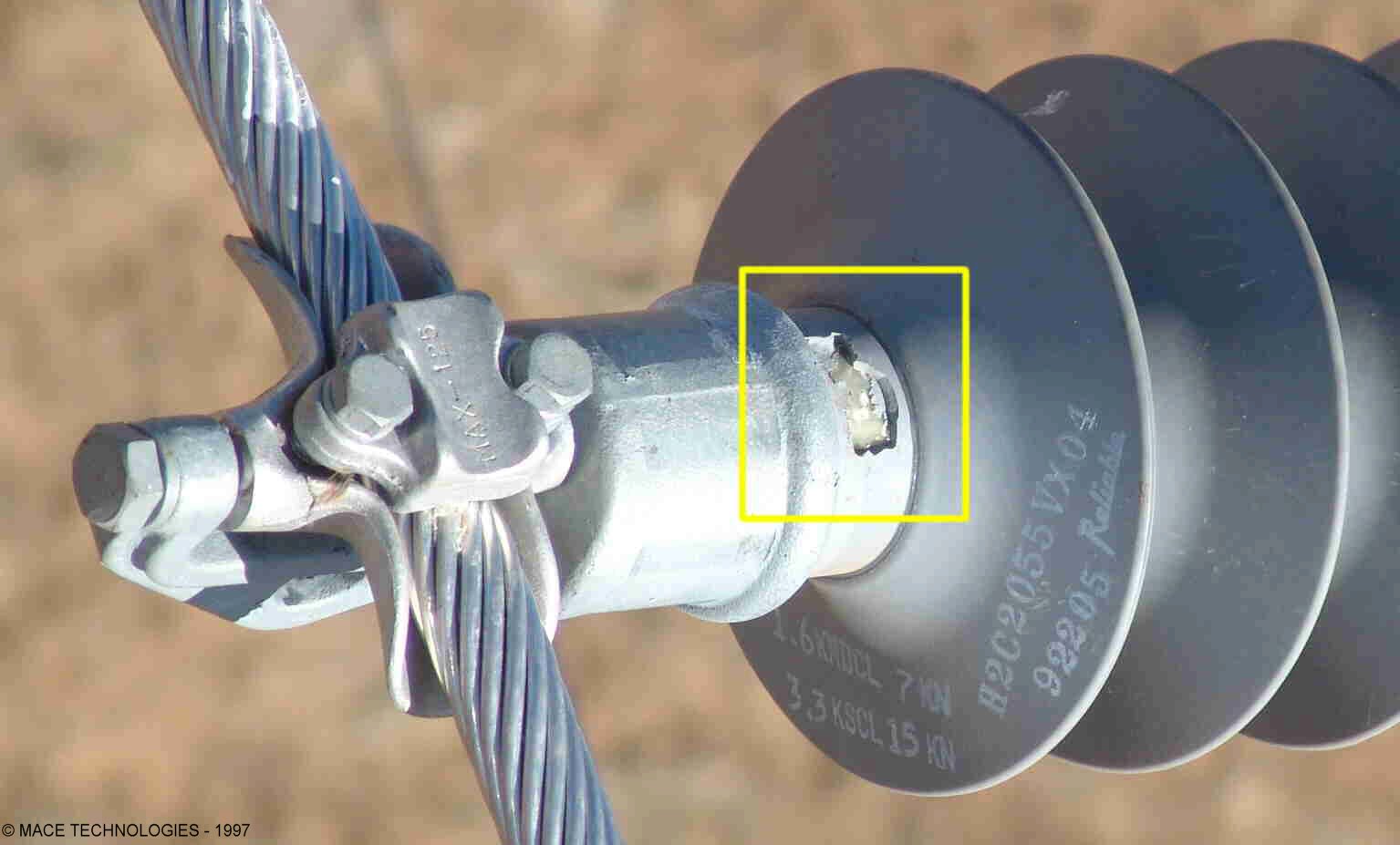 The high quality of the Hawkeye inspection can be largely attributed to the experience of the personnel involved. Comprehensive knowledge of overhead lines and their individual components is critically important. For example, being able to identify the various types of ceramic and non-ceramic insulators and being familiar with all the possible failure mechanisms associated with their particular construction and material is necessary for the detection of potential problems and degradation in the early stages. The following illustrations show a small selection of the types of defects that are typically identified.